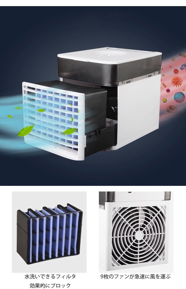 小型クーラー 扇風機 ポータブル ミニエアコン 空気清浄 加湿 冷却 ライト付き USB給電